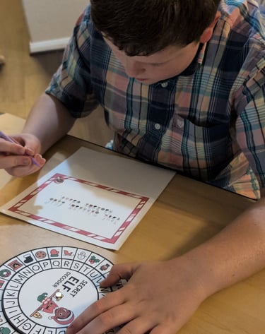 Type a message → click encrypt → print a secret elf note your child can decipher.